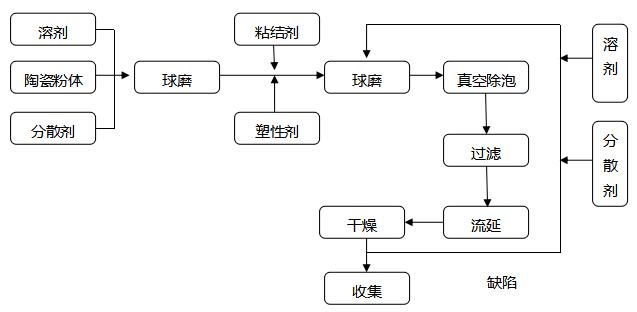 流延成型的關鍵是粉體,陶瓷粉體的化學組成和特性能夠影響甚至控制最終燒結材料的收縮和顯微結構,所以要嚴格控制粉體的雜質含量。陶瓷粉體的顆粒尺寸對顆粒堆積以及漿料的流變性能會產生重要影響。陶瓷粉體中不能有硬團聚,否則會影響顆粒堆積以及材料燒結后的性能。